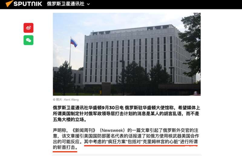 五角大樓傳出了一個讓人毛骨悚然的消息:美軍正在制訂對克里姆林宮的“心臟”進行斬首式打擊的計劃!這可不是美國某家三流小報的曝料,而是“大名鼎鼎”的《新聞週刊》(Newsweek)最新報道的,説是五角大樓“匿名權威消息人士”透露,美國軍方正在制訂行動方案,一旦俄羅斯在烏克蘭使用核武器,美軍就會採取“斷然的回應措施”,其中就包括對普京等俄羅斯領導人進行“定點打擊”。連美軍內部都認為這是個“瘋狂的方案”,而且已經引起俄外交部門的高度關注。