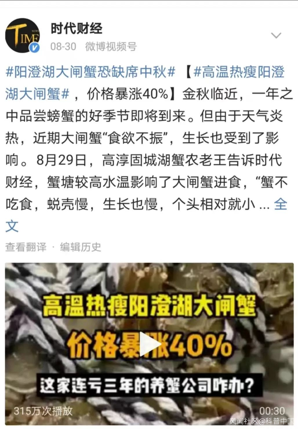 “高温餓瘦大閘蟹”、“大閘蟹再努力也將缺席中秋”……這是怎麼回事?