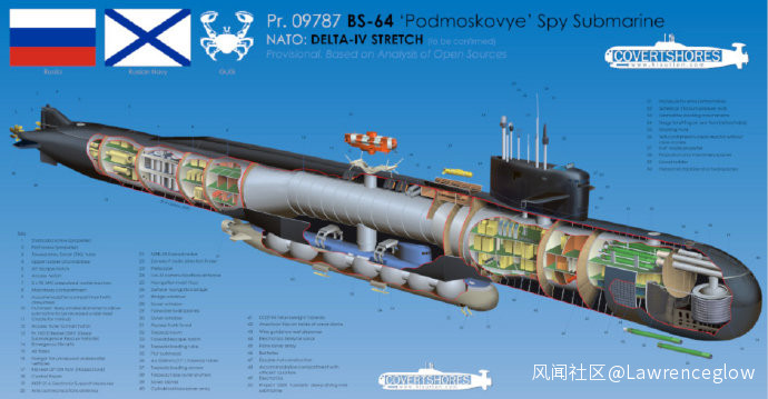 5, 俄羅斯深海研究總局(GUGI)下屬的:2016年服役的“德爾塔IV”改BS-64 Podmoskovye號間諜潛艇,對標美國人的,能攜帶袖珍核潛艇AS-31,Losharik(2019年失火死人那個)和Klavesin-29-2M大型潛航器,執行復雜的水下作業so easy;還有更新的2019年下水的K-329 別爾哥羅德 (“Белгород”),後者更為神秘,而且以核魚雷“波塞冬”而出名。
