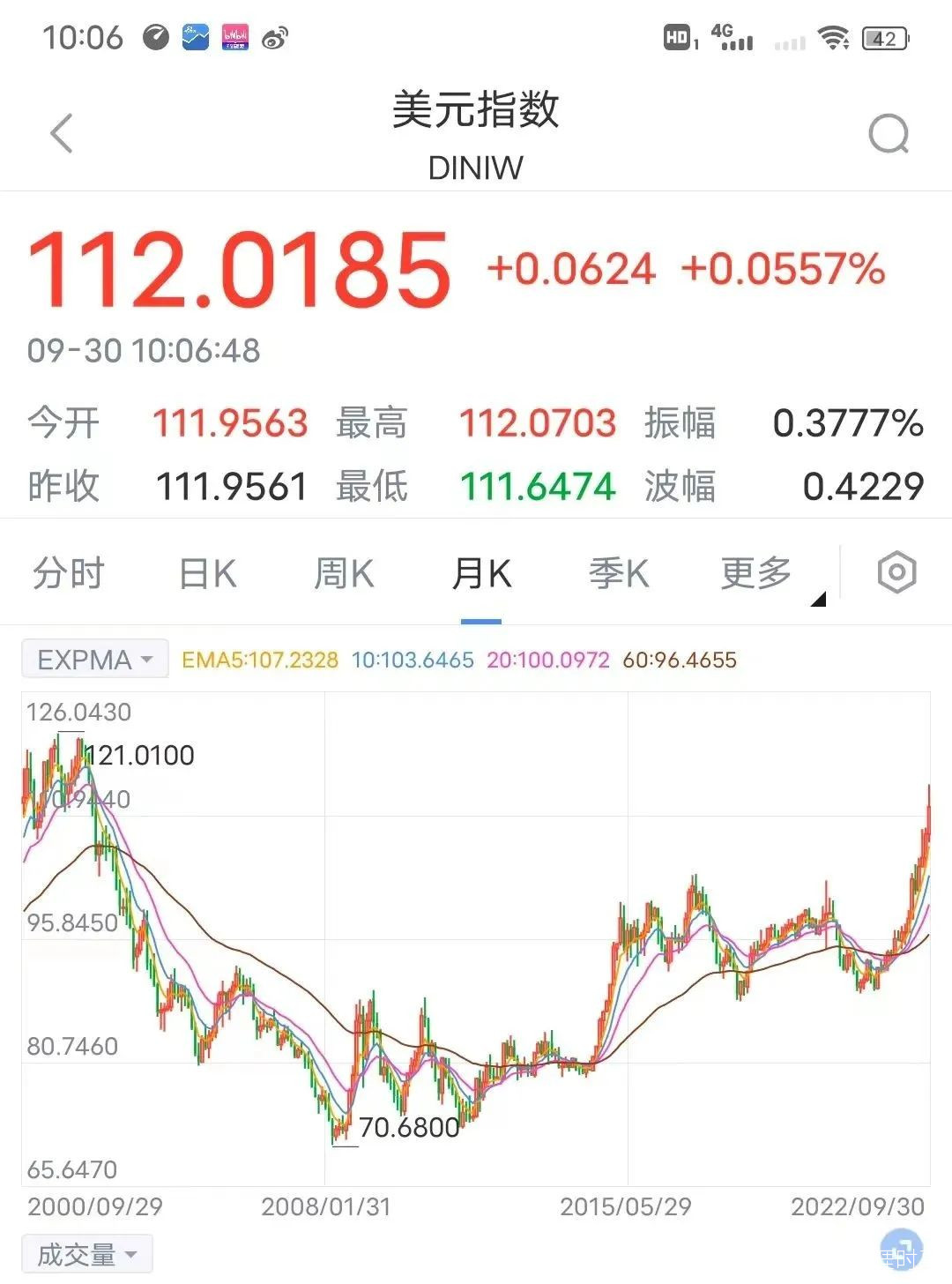 我們先看看美元指數的變化情況:目前,美元指數已經達到了112,創了近20年來的新高。