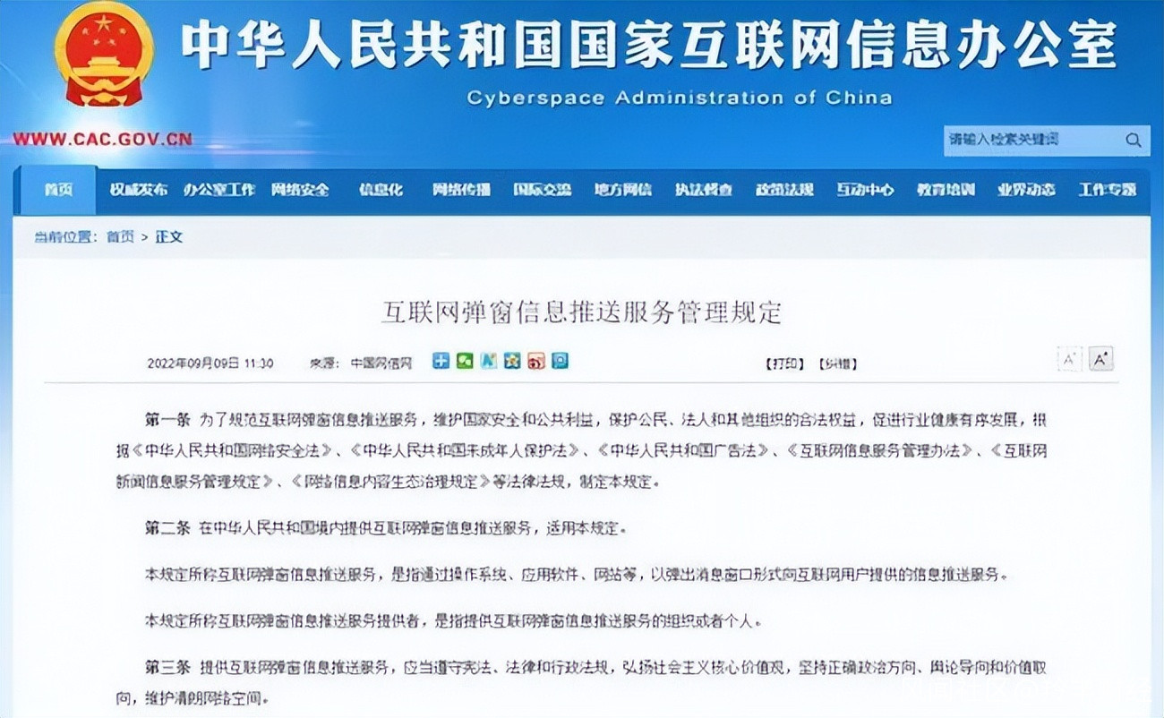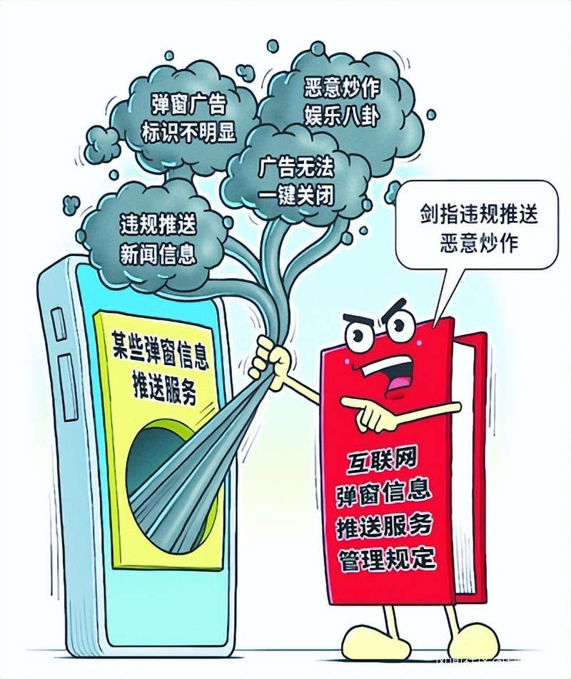 為規範彈窗信息推送服務,2022年9月30日起施行的《互聯網彈窗信息推送服務管理規定》明確規定,要保障用户權益,以服務協議等明確告知用户彈窗信息推送服務的具體形式、內容頻次、取消渠道等,不得以任何形式干擾或者影響用户關閉彈窗,還要求彈窗充分考慮用户體驗,科學規劃推送頻次。