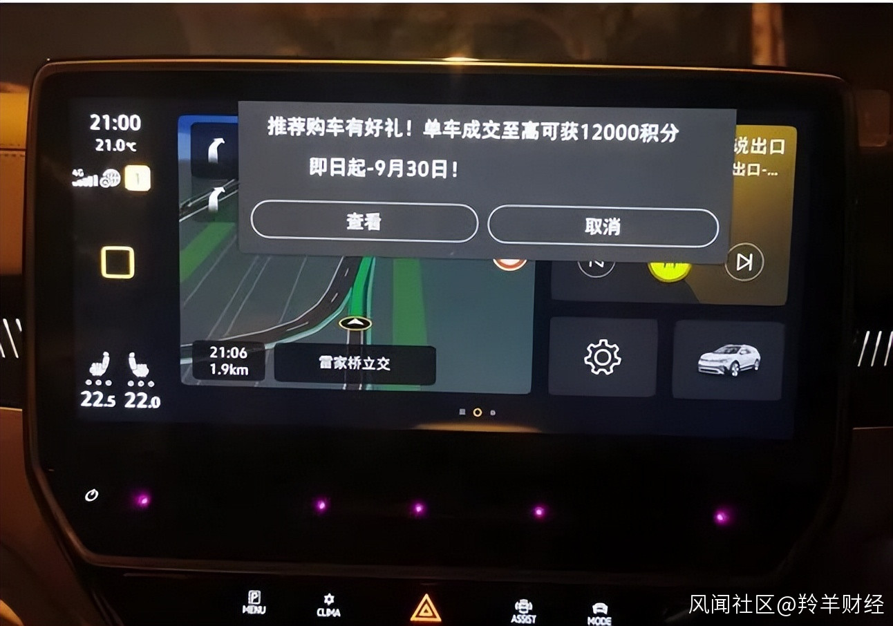 如果因彈窗廣告遭遇的是財產損失的話,而彈窗廣告入侵汽車座艙,則在網上引發安全擔憂的話題,也上了熱搜。有消息稱,某消費者在駕駛一汽大眾ID.6純電車汽車行駛時,正在使用車載導航的中控屏出現彈窗廣告,彈窗信息為“推薦購車有好禮!單車成交至高可獲12000積分 即日起-9月30日!”