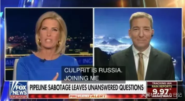 另一家與CNN頗有恩怨的美國媒體福克斯不幹了,立馬找來了幾年前曝光“稜鏡”計劃報道的記者Glenn Greenwald,直接開罵,罵完之後他説到:我不知道是誰炸的,但是我知道美國十幾年來,從小布什政府以來,就試圖霸凌歐洲,讓歐洲不要從莫斯科買天然氣,而從美國買……川普當時跟德國人説,我們幫你們搞國防,你們應該跟我們買天然氣……突然的,俄羅斯的天然氣管道爆炸了,我們現在怪俄羅斯?