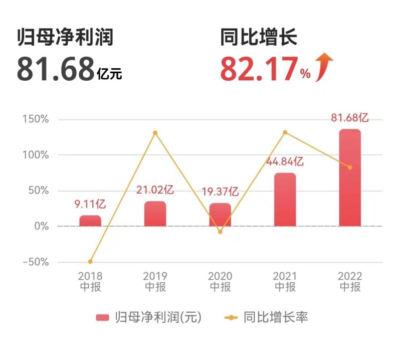 寧德時代2022年上半年營業收入為1129.71億元,同比增長156.32%;淨利潤為81.68億元,同比增長82.17%,一改第一季報的頹勢。