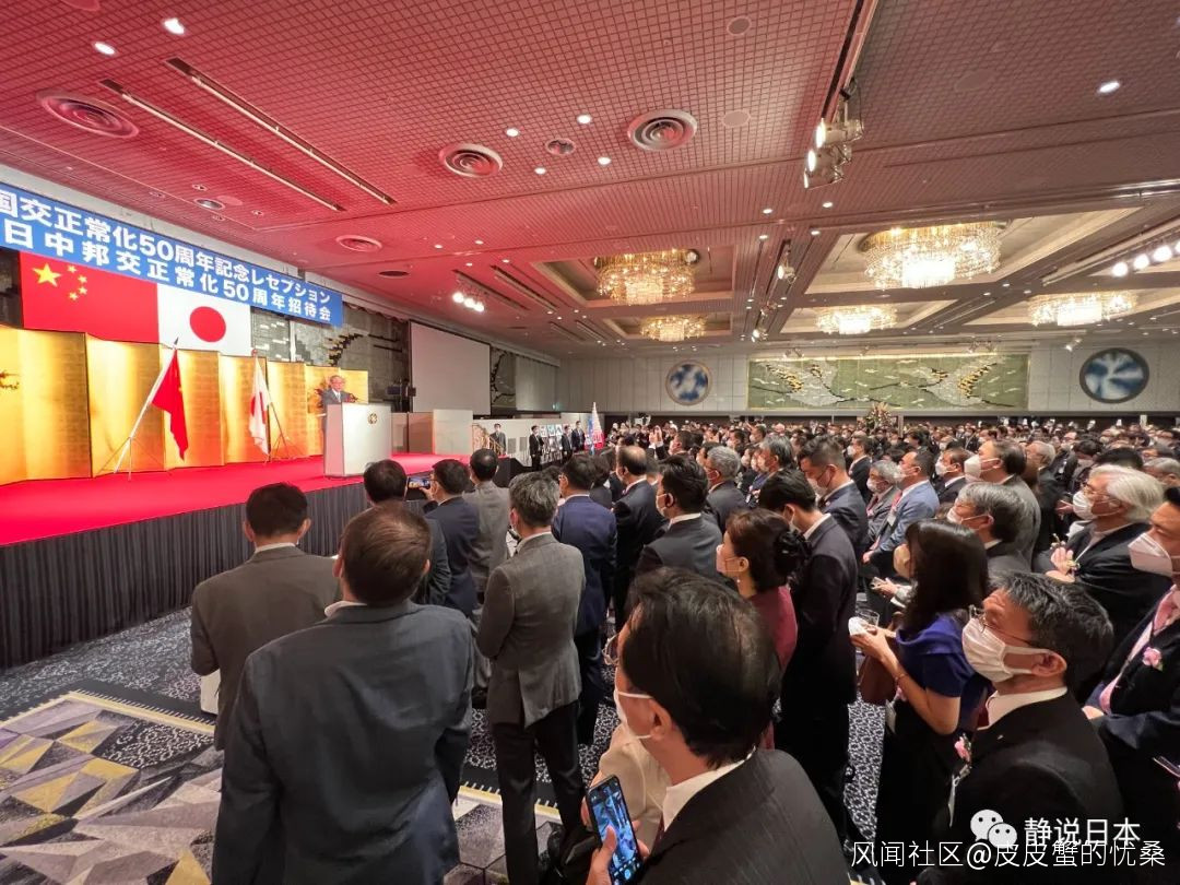 中午,在東京五星級的新大谷酒店,一場大規模的慶賀酒會在此舉行,酒會的名稱叫做“日中邦交正常化50週年紀念酒會”,在日本一天感染4萬人的情況下,來自日本政界、財界和日中友好團體人士共1000人出席了酒會。日本外務大臣林芳正、日本前首相福田康夫、自民黨前幹事長二階俊博和中國駐日本大使孔鉉佑等在酒會上發表了充滿希望的致辭。大家乾杯的酒,是當年周總理宴請田中首相的茅台酒。