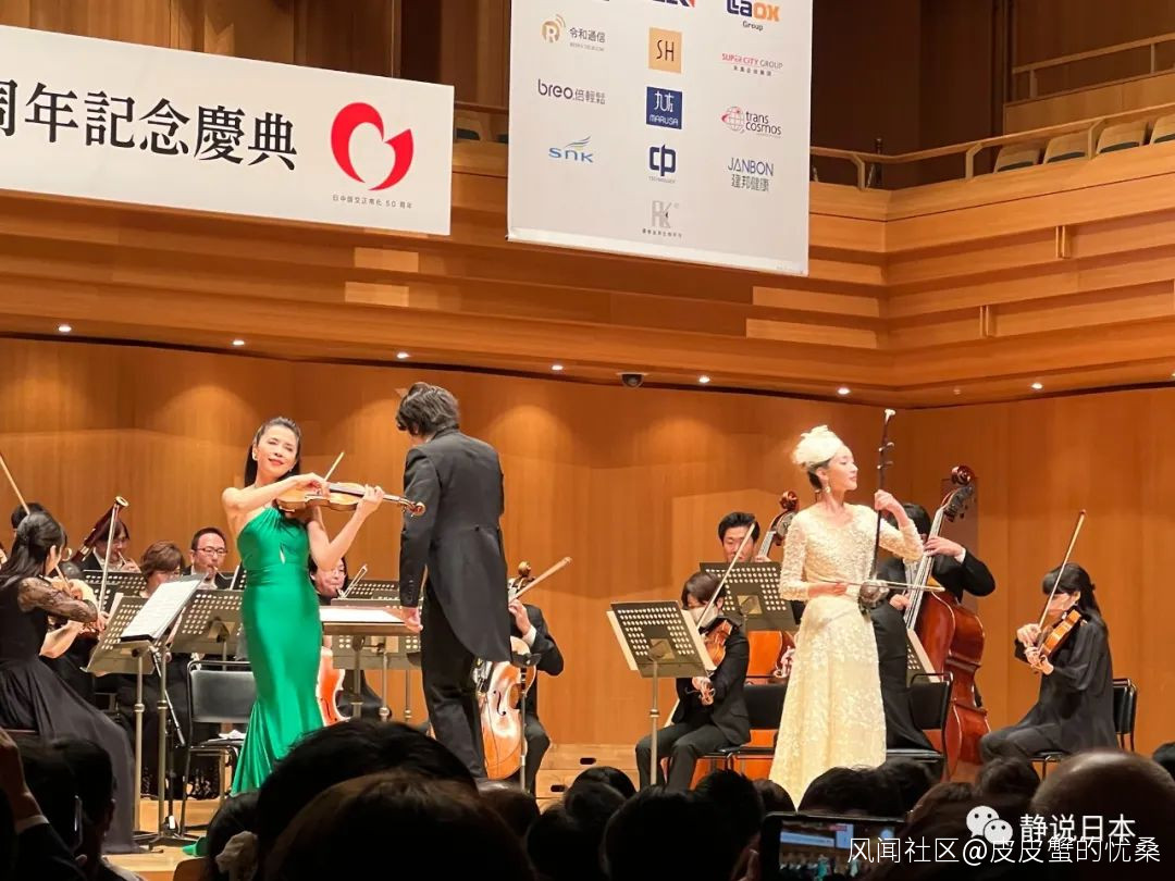晚會上,日本著名小提琴家川井鬱子、雅樂演奏家東儀秀樹和二胡演奏家張濱、張貝貝等藝術家和樂團,演奏了中日兩國的名曲,把慶賀活動推向了高潮。