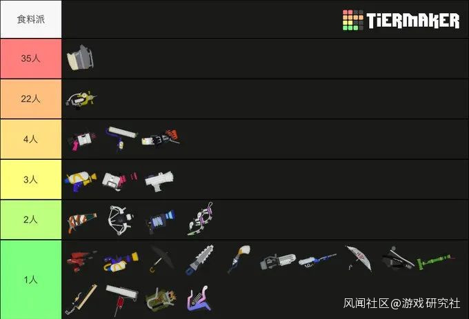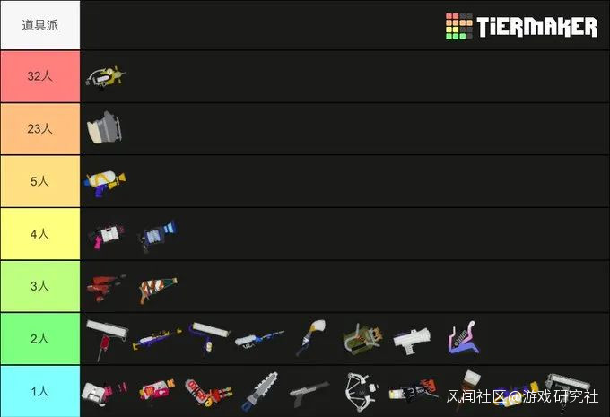 在其中兩個陣營,慣用“洗衣機”的玩家都是最多的,佔比約三分之一;僅在最後取得勝利的“工具”隊伍,俗稱“針管”的窄域標記槍搶走了“洗衣機”的寶座。