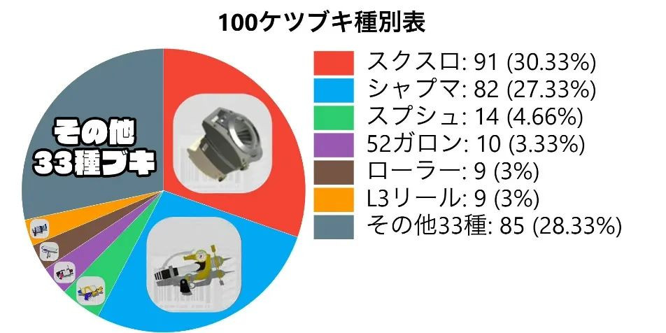 就日服榜單的情況來看,迴旋潑桶無疑是最受歡迎的武器,300人中有91名玩家熱衷於使用“洗衣機”,佔比30.33%。