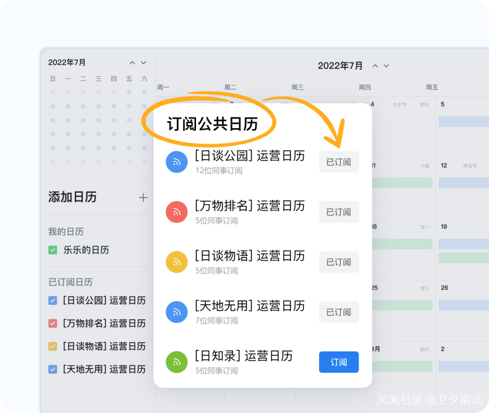 **“日談公園”用企業微信的“公共日曆”解決了問題,設置好各節目上線時間,**團隊成員只需一鍵訂閲,就能在自己的日曆上看到關鍵節點,到期前系統還會自動提醒。