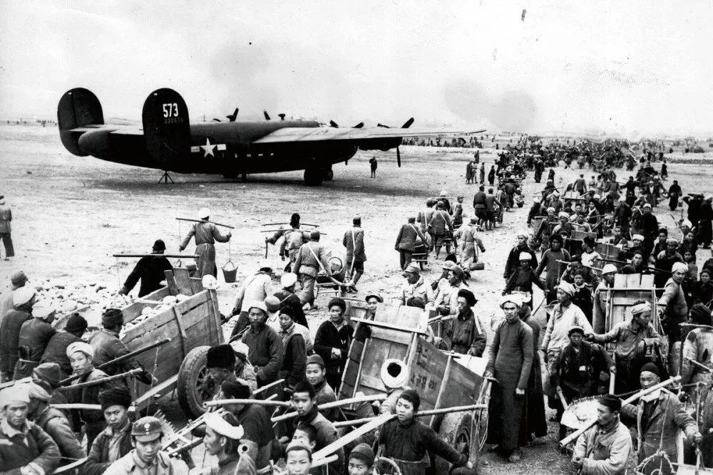 然而,隨着1942年5月日軍攻佔密支那,滇緬公路這最後一條聯外交通線被切斷,為保障國民政府的物資供應,中美被迫決定在印度阿薩姆邦和中國昆明之間開闢一條持續轉運戰略物資的空中通道,這就是著名的駝峯航線,補給工作由美國陸軍航空隊負責。