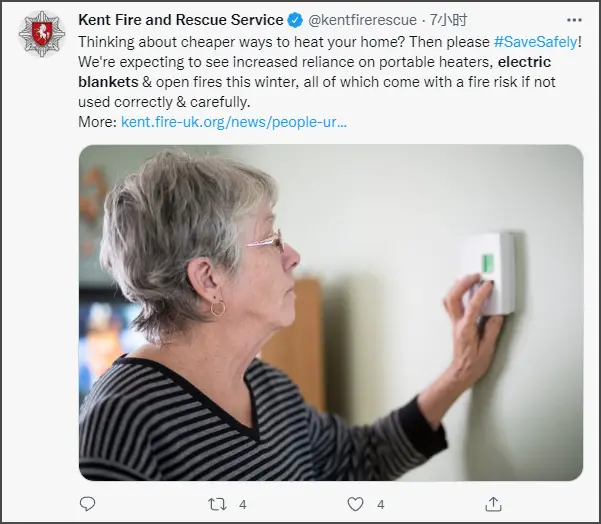 英國肯特郡消防官推發文表示預計今年冬天用電熱毯等加熱器具的人會飆升,號召大家火速補習有關安全知識。