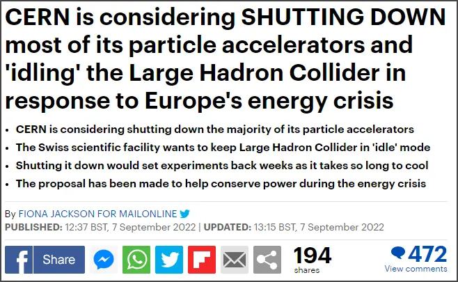這個月歐洲已經在考慮要不要關掉強子對撞機。