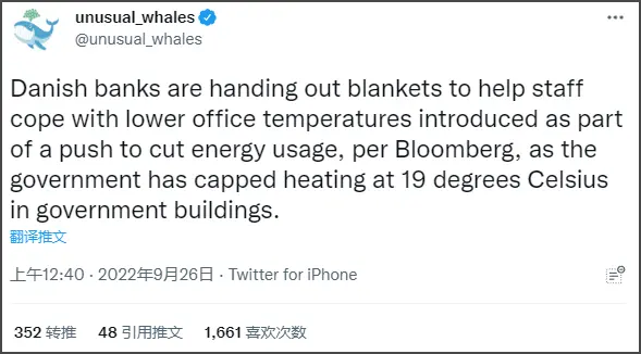 丹麥銀行開始給職員發毛毯,因為寫字樓裏空調最高只給開19度。