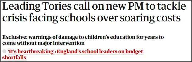 英國兩名前保守黨、教育部長上月末提議政府立即干預能源價格,否則學校運營不下去只有關閉。