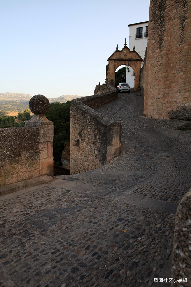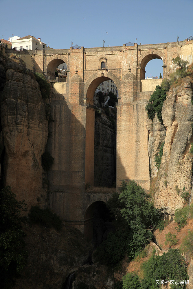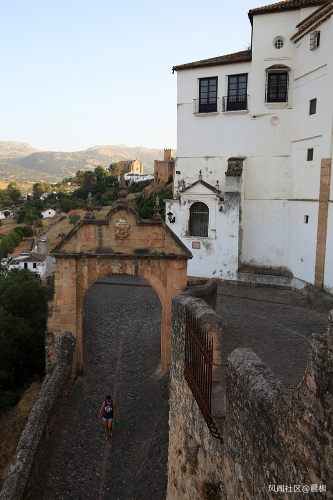 但也因為這獨特的地貌,峽谷兩邊原來只有一座“老橋”連接,後來又造了一座“新橋”,不過這“後來”也是200多年前了。橋頭的修道院當年是宗教審判的地方,修道院旁是西班牙最早的鬥牛場(第二老、最大的在馬德里,第三是塞維利亞)。