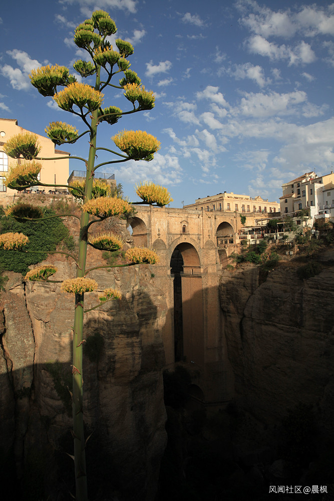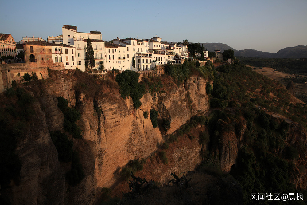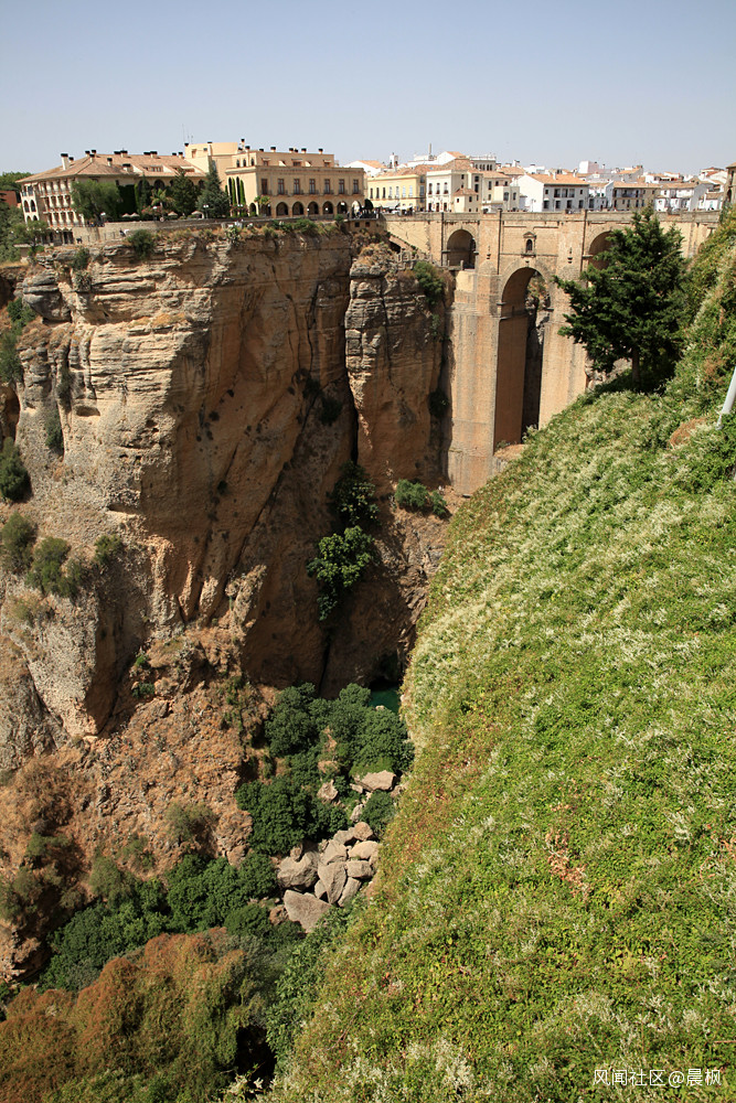 隆達出名大概是因為海明威,《鍾為誰鳴》裏説到那座新橋,內戰中的勝利者都懶得槍斃,直接把俘虜從橋上丟下去了,峽谷底的岩石上佈滿了屍體。這地方也確實特別,周圍遠地方有點山,但附近還是平的,就隆達突然隆起一大塊巨石山,還被峽谷劈裂成兩半,真不知道這地貌是怎麼形成的。