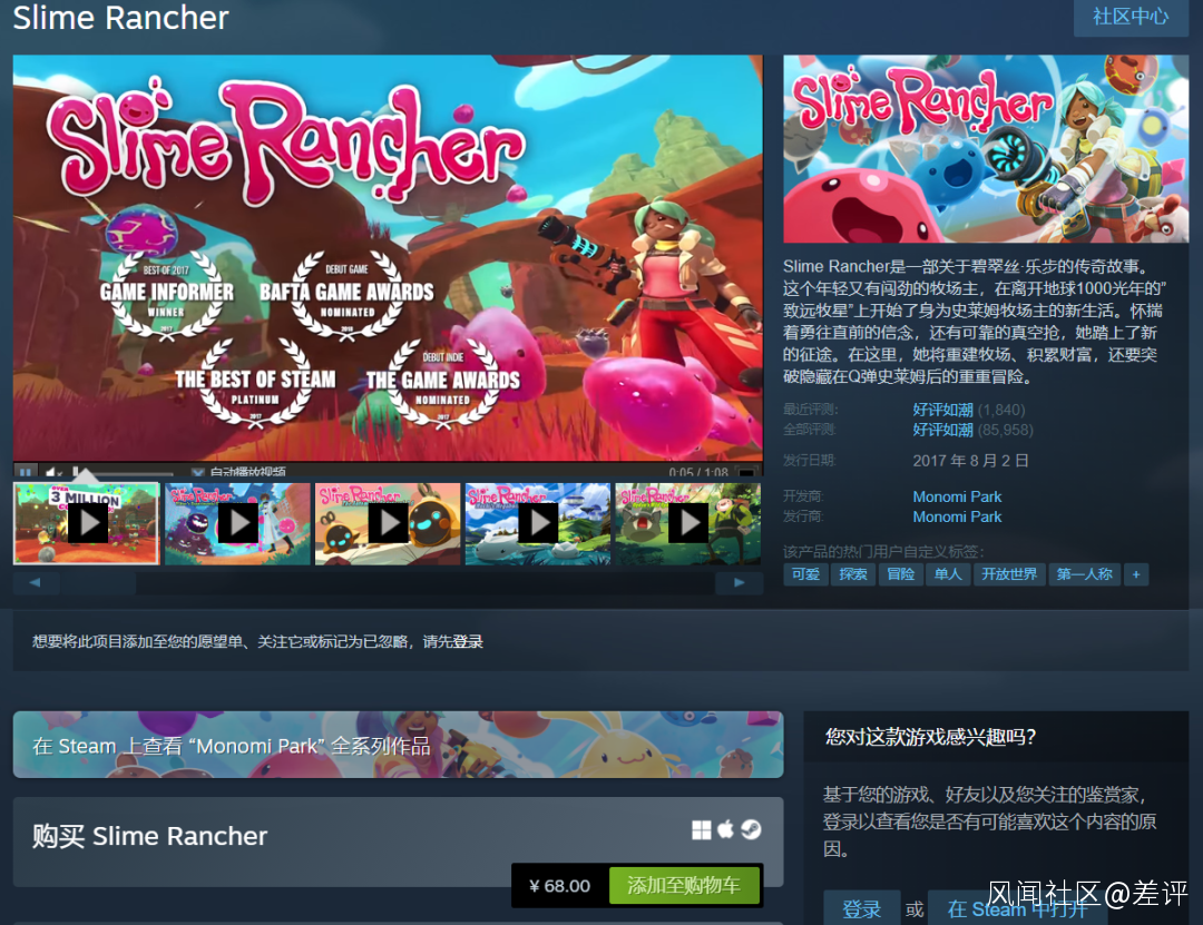 有些讀者肯定對這張圖裏的生物不陌生了,這是美國獨立工作室Monomi Park 在2017 年發售經營養成遊戲《 史萊姆牧場 》。