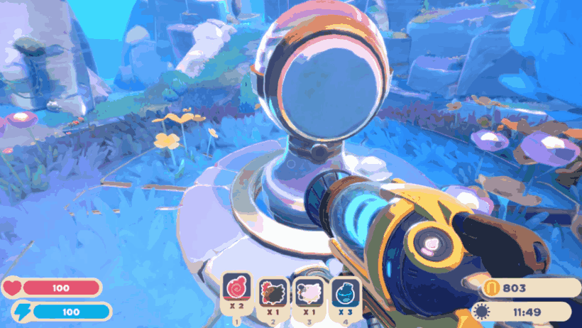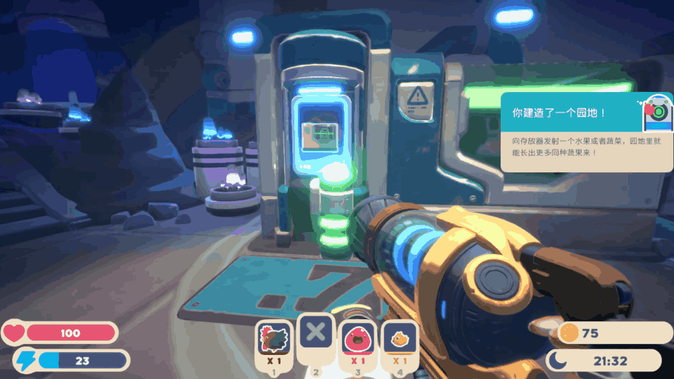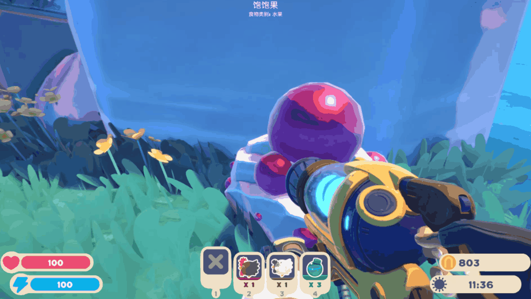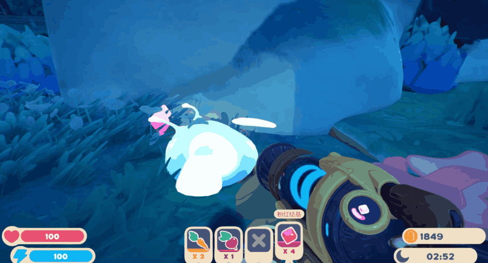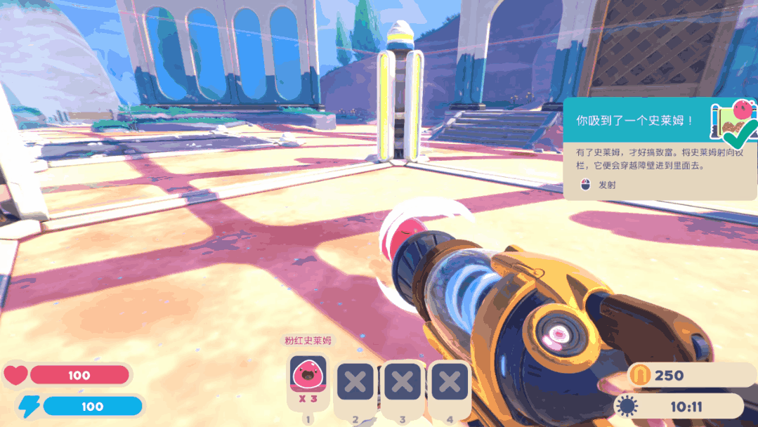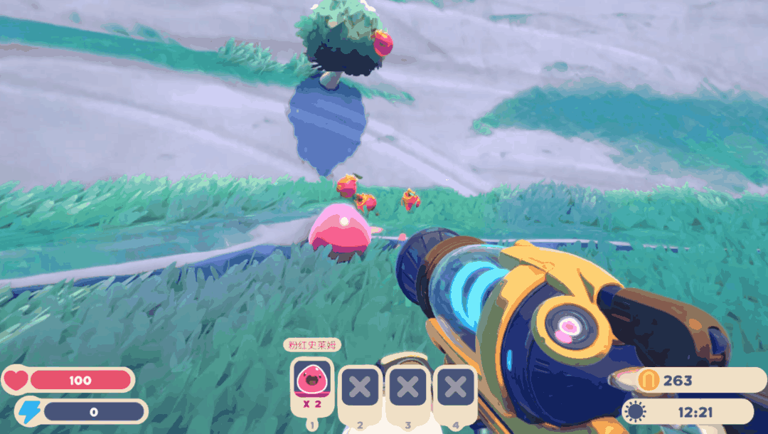 在小島上的各種地方,都藏着不同種類的史萊姆。而我們的槍,就可以把這些史萊姆吸進揹包裏,捕捉起來。