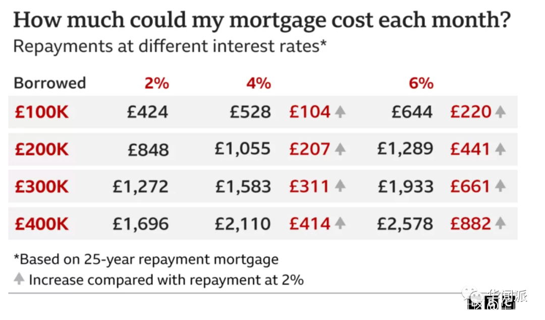 根據投資公司AJ Bell的數據,如果有一個人在2021年3月抵押貸款利率為1.5%時,申請了20萬英鎊的兩年期固定抵押貸款,那麼當現在利率升高到6%時,這個人的年度還款額度將增加7000英鎊。