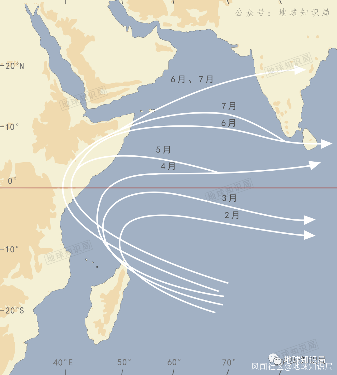 這主要是因為夏季的南亞季風,是由東南信風偏轉形成的西南風,這個偏轉點就在索馬里附近,並形成強勁的索馬里急流,風速可達65m/s,將印度洋的水汽都吹到了印度半島,阿拉伯半島只能在副高的控制下看着印度洋,但就是不下雨。