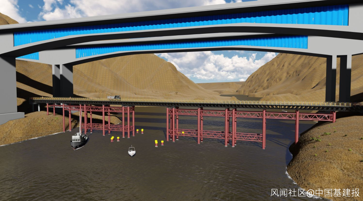 為保證項目主體工程什川黃河特大橋和大河坪隧道的施工便利,三分部項目團隊研究決定搭設一座橫跨黃河的臨時鋼棧橋,建設位置於什川黃河特大橋雙幅之間,是什川黃河特大橋與小樁號側大河坪隧道出口端實現施工陸路運輸的“生命通道”,也是主橋在黃河兩岸同時開展作業的先決條件。它的建成投用,對項目大河坪隧道出口端與整個工程的重要控制節點什川黃河特大橋的建設至關重要。