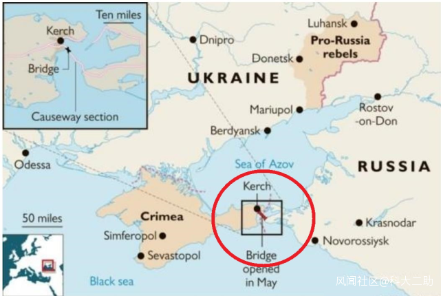 刻赤海峽,位於克里米亞半島與俄羅斯西部的塔曼半島之間,具有非常重要的戰略地位,是連接亞速海與黑海的唯一海上通道。在2014年時,俄羅斯吞併克里米亞半島以後,獲得了刻赤海峽的控制權,同時俄羅斯也控制了烏克蘭港口城市從亞速海到黑海、直至地中海的通行權。