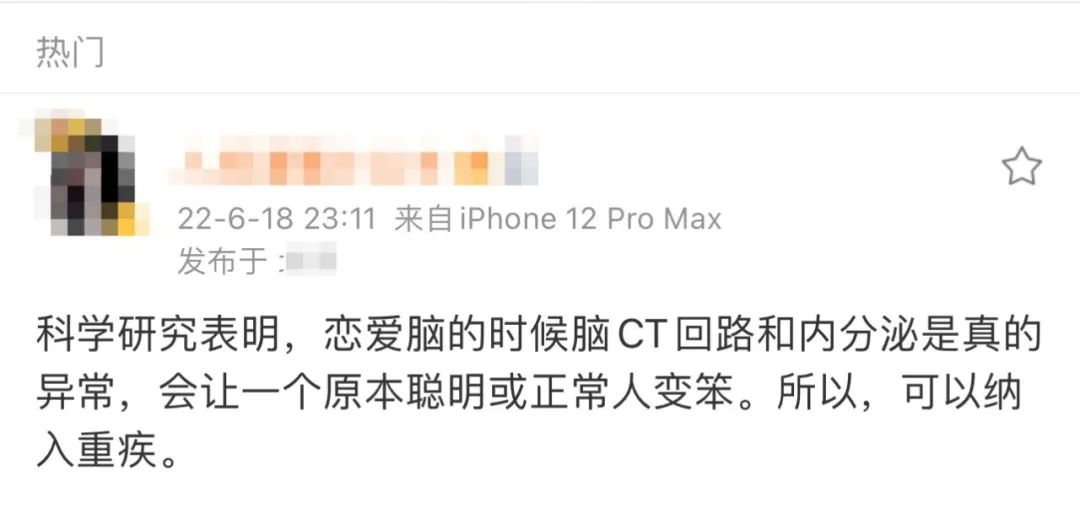 還有人建議,戀愛腦作為重大疾病,納入醫保: