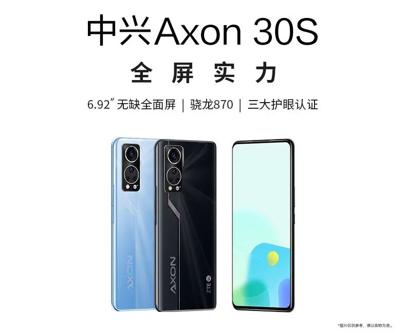 規格方面,中興Axon 30S採用6.92英寸屏幕,刷新率為120Hz,搭載高通驍龍870處理器,後置6400萬像素主攝、800萬像素超廣角、微距和景深四攝,前置1600萬像素。電池為4200mAh,支持55W有線快充。
