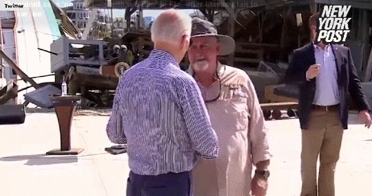 拜登夫婦到達災區後,州長德桑蒂斯夫婦出來迎接總統,但心結仍然無法化解。