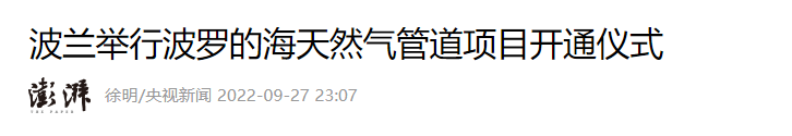 線索2:9月27日,也就是北溪管道被摧毀之後第二天,連接波蘭和挪威的波羅的海天然氣管道舉行了開通儀式,這條管道線設計年輸送量是100億立方米。