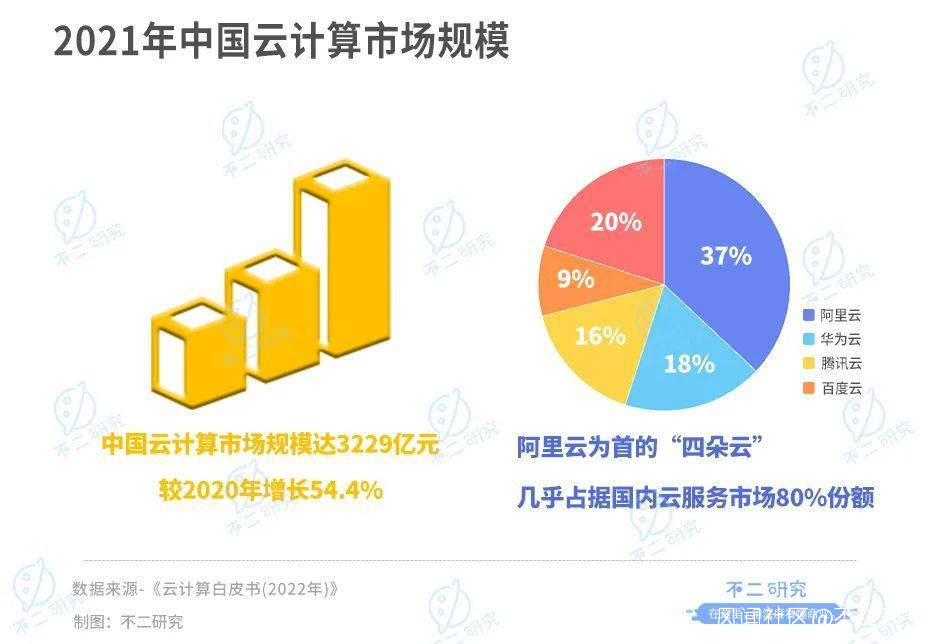 在「不二研究」看來,雲計算上半場阿里雲、華為雲、騰訊雲、百度雲憑自身資源取得先機,“四朵雲”格局初成。但是下半場競爭更為激勵,國內市場剩下的20%份額在To B,To G的細分賽道,“四朵雲”不斷選擇哪個方向都將面臨細分賽道玩家的強烈抵抗,更為廣闊的出海方向更是要面對國際科技巨頭的狙擊。下一個五年,“四朵雲”還會剩下幾朵?