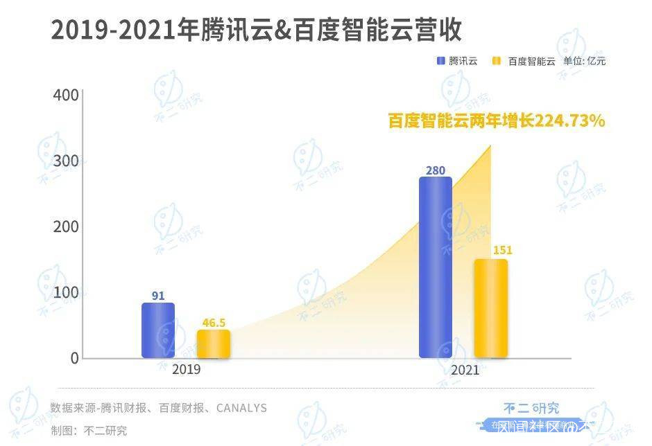 從業績看,百度雲則發力較晚,慢了前三者一步,百度雲在2018年第四季度才開始公佈業績。據百度財報顯示,百度雲2019年實現營收46.5億元,2021年則實現營收151億元,兩年增長224.73%。