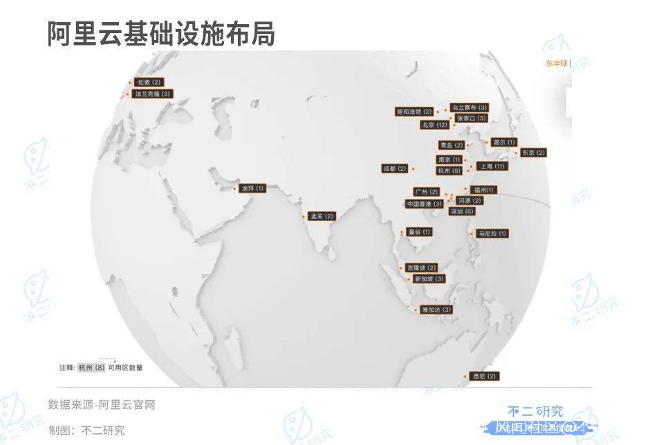 9月22日,阿里雲宣佈將在未來三年投入70億元,加快海外市場佈局,計劃在海外增設6個服務中心,分別位於波爾圖、墨西哥城、吉隆坡、迪拜等地。據阿里雲官網顯示,阿里雲目前基礎設施已面向全球四大洲,開服運營27個公共雲地域、84個可用區,2800個網絡節點,運營着超過百萬台服務器。