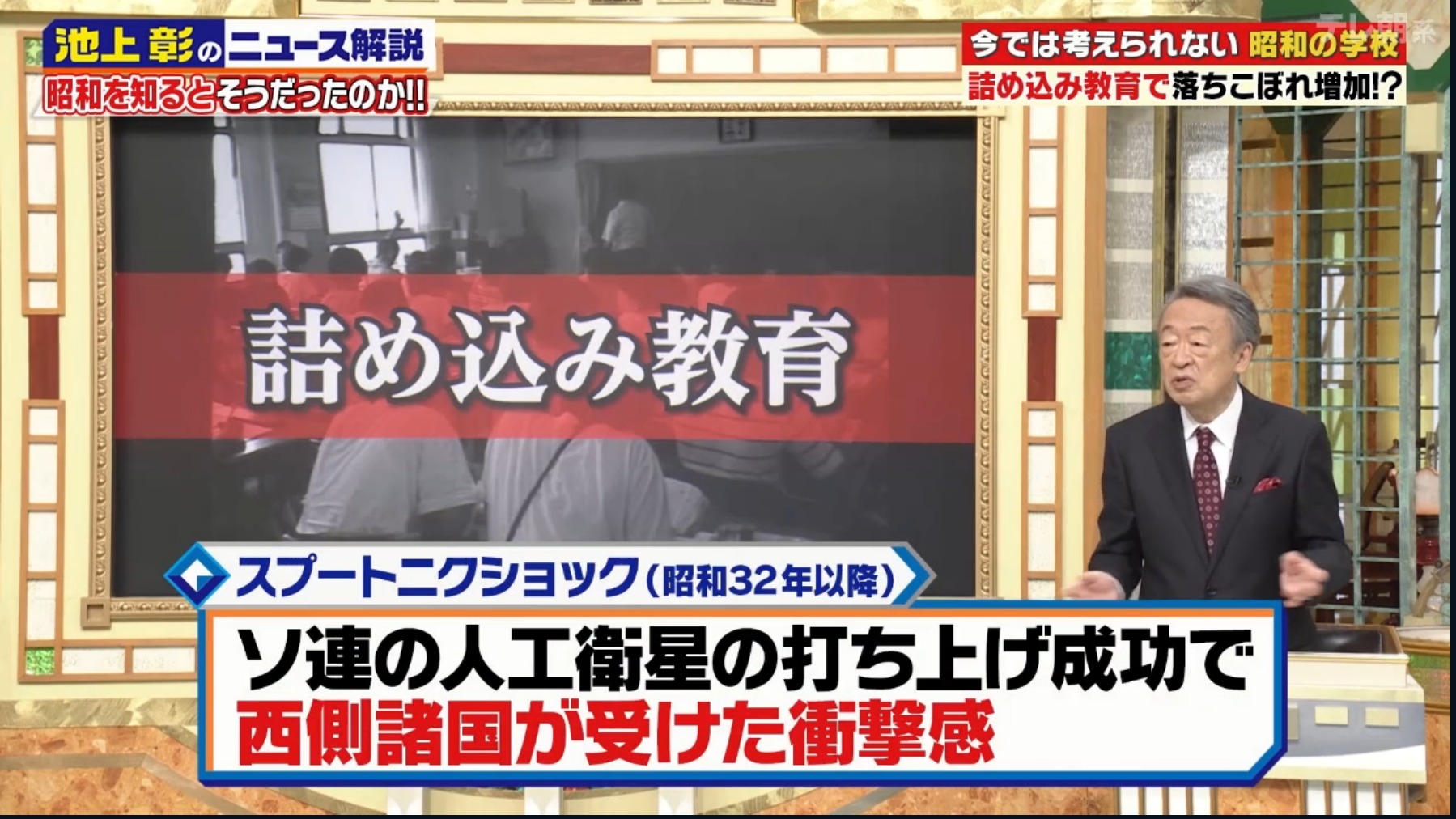 斯普特尼克危機--1957年10月4日蘇聯搶先美國成功發射斯普特尼克1號人造衞星,令西方陷入一段恐懼和焦慮的時期。日本也受到衝擊,認為“快樂教育”使日本培養人才落後,所以開始進入大幅度增加教育內容,延長教育時間的“填鴨教育”時期。