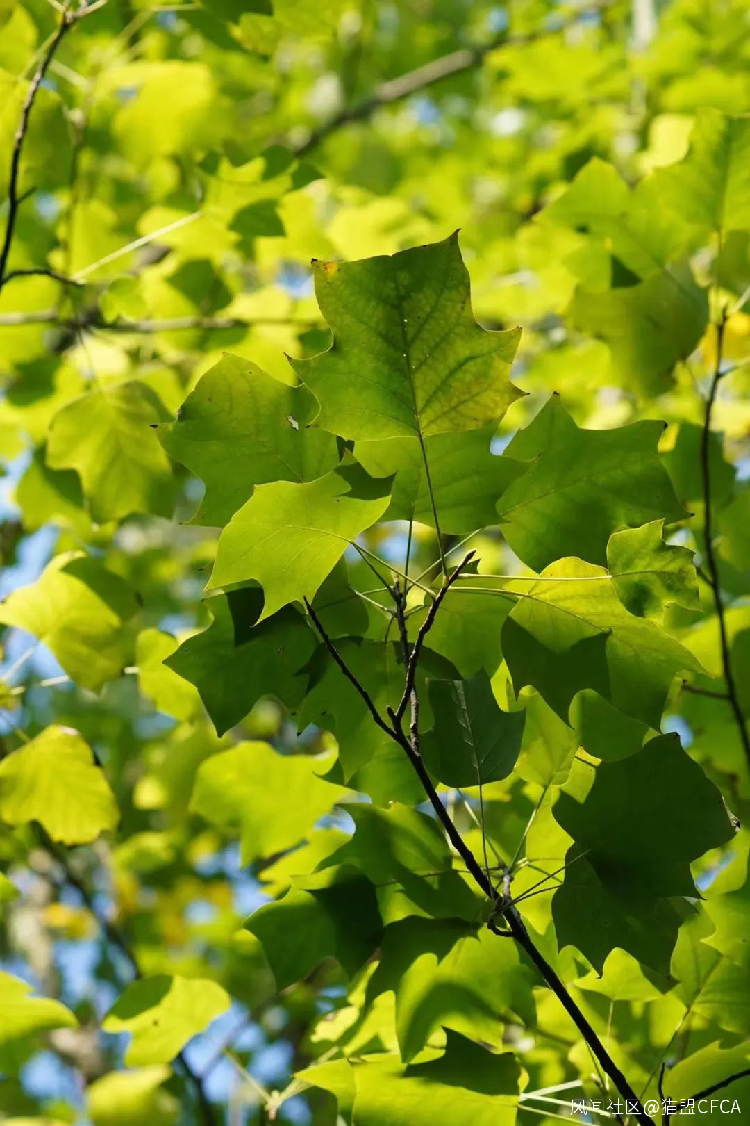 早秋燦爛的金色晨光在葉片間躍動。根據葉子的形狀判斷,我們面前的這棵是中國馬褂木。