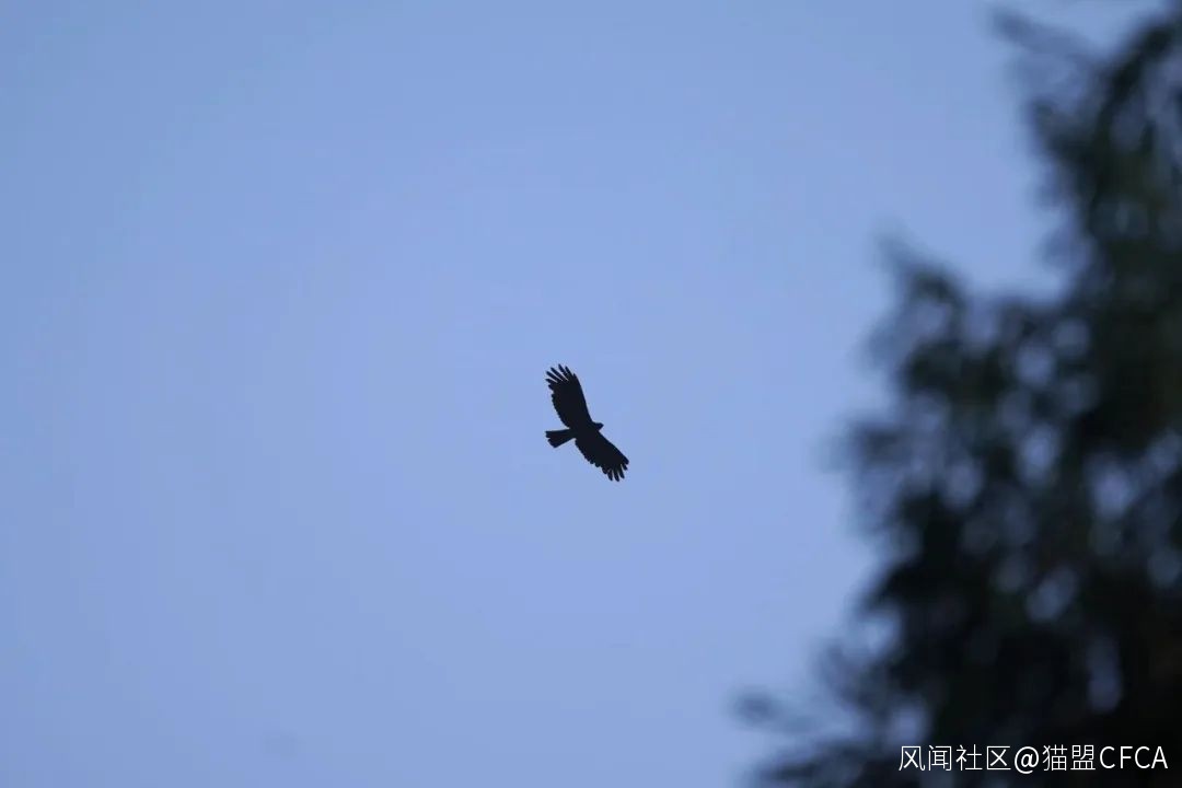 抬眼望去,一隻深褐色的林雕緊貼着蒼翠的樹冠層,在山脊線上下時隱時現;它的雙翼平整而寬闊,翼指深長,飛行和盤旋的姿態沉穩緩慢,一如我在許多照片和視頻裏看到的那樣。