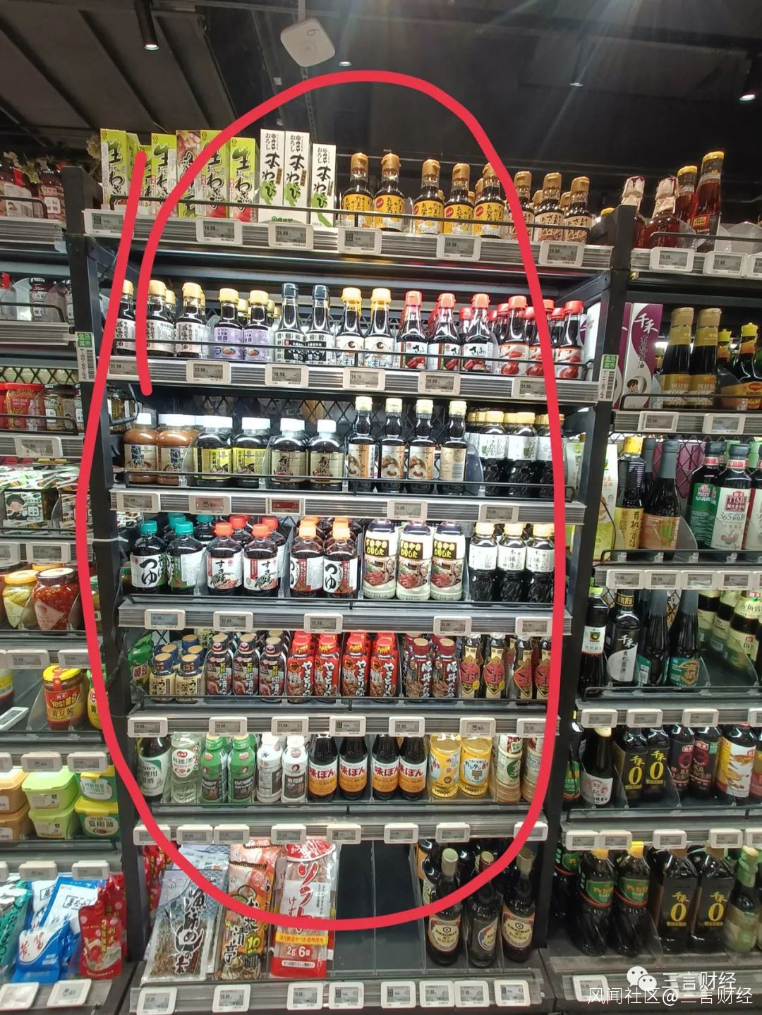 這家超市的醬油,李錦記佔比大約20%,海天大約10%,千禾大約5%。
