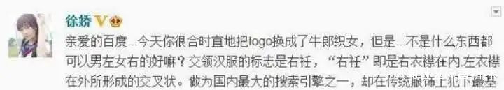比如之前百度七夕節做了個定製LOGO,結果裏面男主的衣服是左衽: