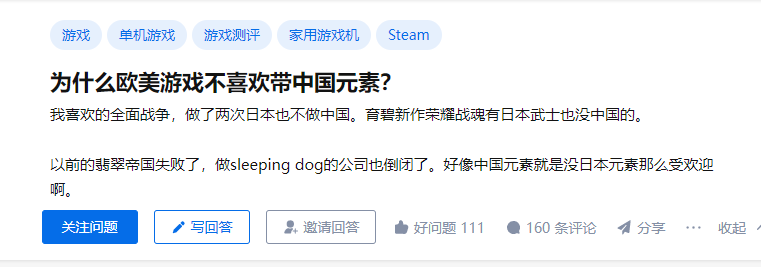 知乎上還有人問,為啥現在的遊戲大作都不加中國元素了。