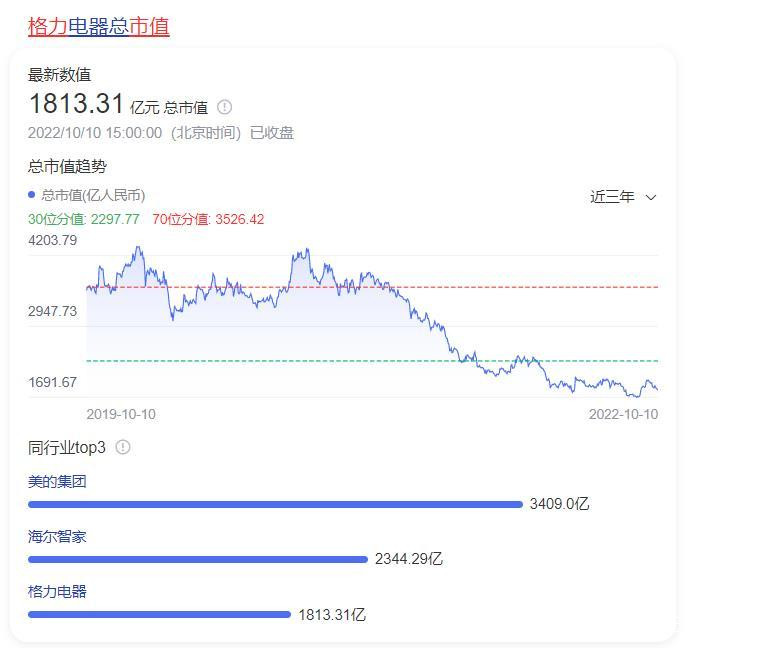 從家電行業來看,同樣幾大家電巨頭都一樣面臨相差無幾的困境,但是海爾、美的多元化轉型無疑要更成功。格力美的在家電行業爭了幾十年,如今美的市值3409億元,而格力市值僅剩1813億,期間差距無疑值得格力反思。