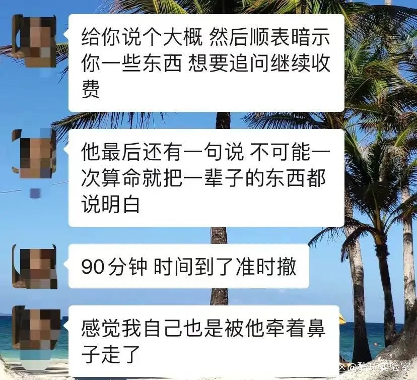 我朋友找的1200元一次的服務,在這個號上根本不算貴,甚至算是“低端服務”了,最高的算一次命要1萬元整。