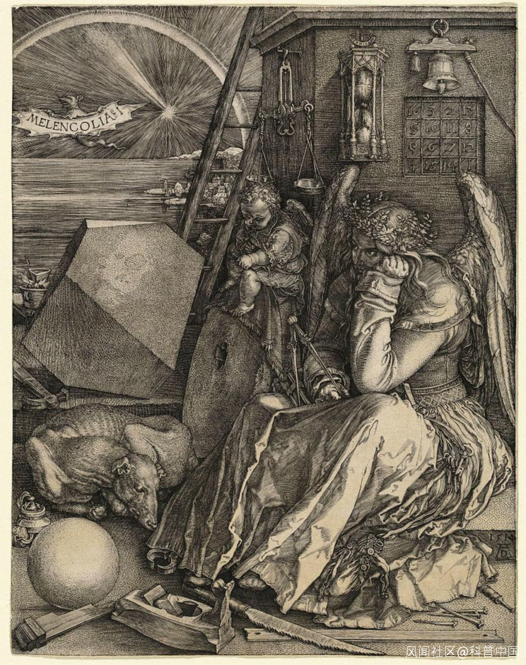 圖2. 德國藝術家丟勒創作於1514年的人物版畫名作:《憂鬱的我》(Melencolia I)