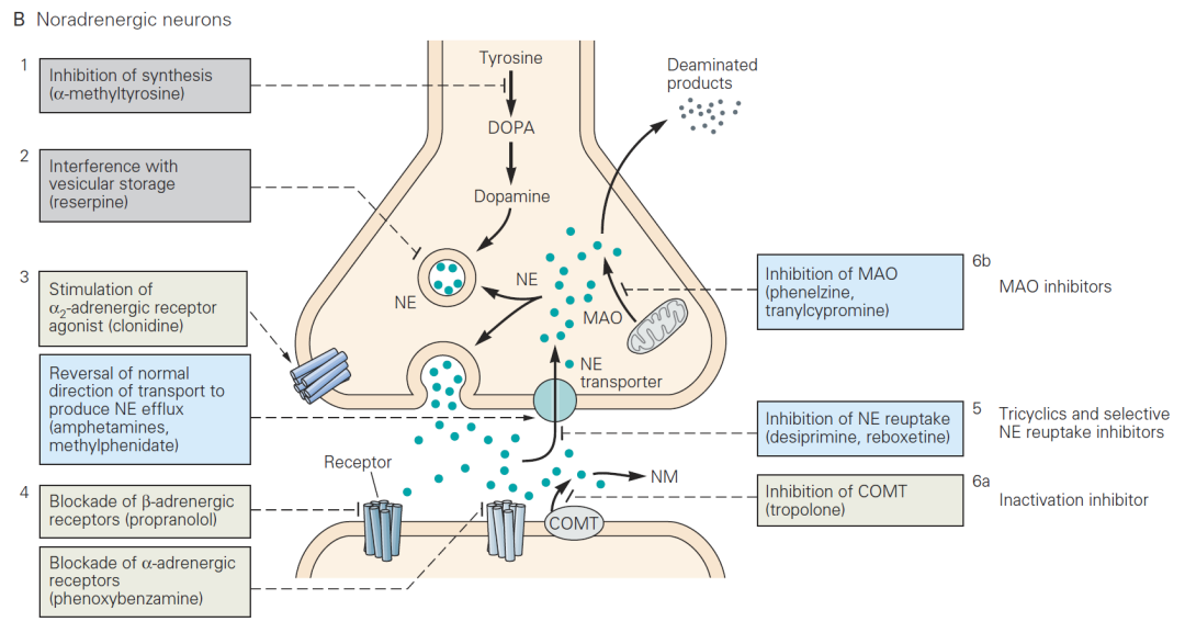 圖8. 去甲腎上腺素回收抑制劑的抗抑鬱作用機理。丨來源:Kandel, E.R. et al (2021) Principles of Neural Science, 6th Edition。