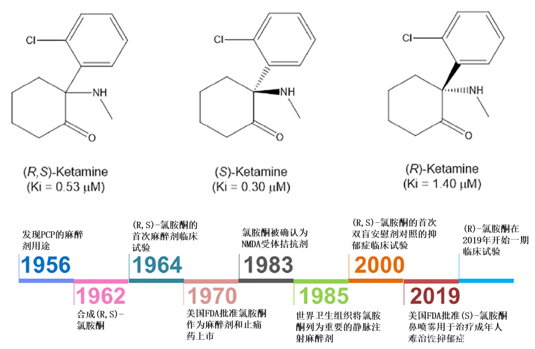 圖11.氯胺酮從麻醉劑到抗抑鬱劑的歷史發展脈絡**[7]**