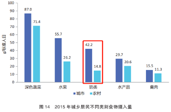 但是我國大多數人都沒喝夠推薦量,根據《中國居民膳食指南科學研究報告 2021》中的數據顯示,2015 年我國城市人均牛奶攝入量只達到了 2016 版膳食指南推薦量的 42%,農村更低。