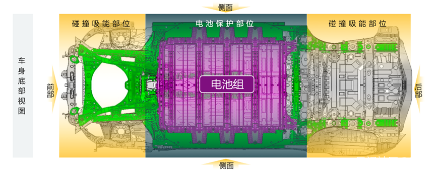 而廣汽豐田 bZ4X 竟然把兩側加起來 460mm 的地方都用作中空結構,來實現潰縮吸能,可見廣汽豐田對電池安全防護的重視。