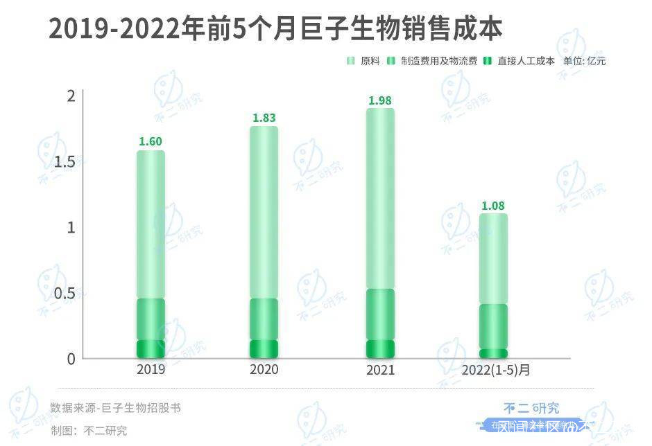 較高的毛利率來自於產業鏈中的主導權。在膠原蛋白領域,鉅子生物覆蓋了從原料端到終端產品的全鏈條,因此具備較強的成本控制能力。招股書顯示,2019-2021年及2022年前5個月,鉅子生物銷售成本僅分別為1.60億、1.83億、1.98億和1.08億,包括原料採購、製造費用及物流等費用。