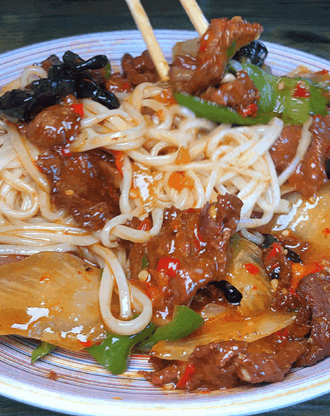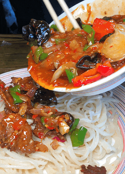 這些米粉隨着貴州的“疆漂”來到新疆之後就打開了新紀元的大門——變身炒米粉。當米粉隨着辣椒和肉塊一起在鍋裏翻騰時,新疆的辣妹子早就暴露了自己的吃貨本性。