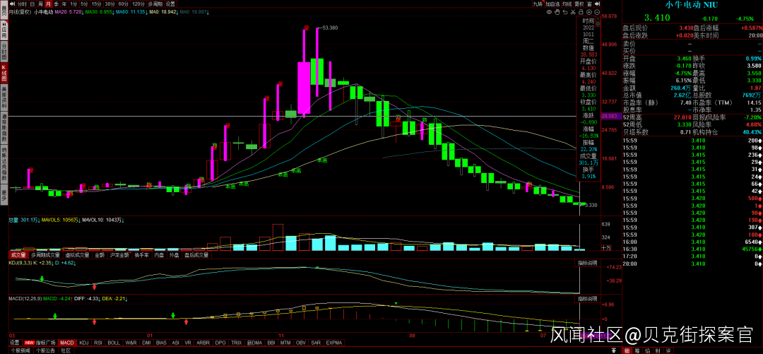 **2015年,顛沛許久的李一男終於決定自己創業,**並創下15天眾籌7200萬元的記錄,但同時因多次使用妹夫和母親的證券賬户全倉買入某公司65.7042萬股,而身陷囹圄,直至2017年出獄,**李一男才正式開啓小牛的創業之路,並與2018年迅速赴美IPO,即便如今小牛電動[NIU]**的股價已經跌至不足4美元每股。