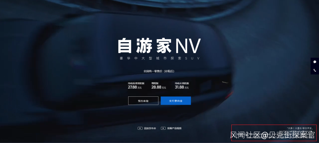 雖然自遊家NV的數據,確實沒有吸引眼球的亮點,但是在其主頁宣傳方面,卻有令人矚目的看點,即“大乘”二字。